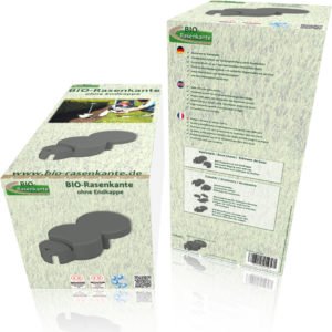 12 einzelne BIO-Rasenkante-Steine (ohne Endstück) im Karton mit Kurzbeschreibung.